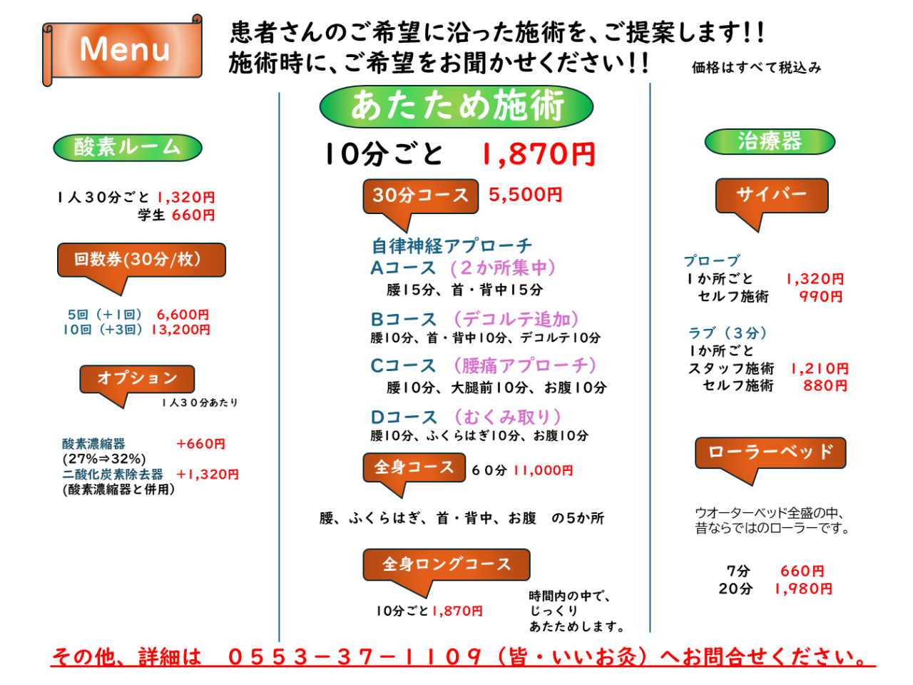 メニューや施術金額を